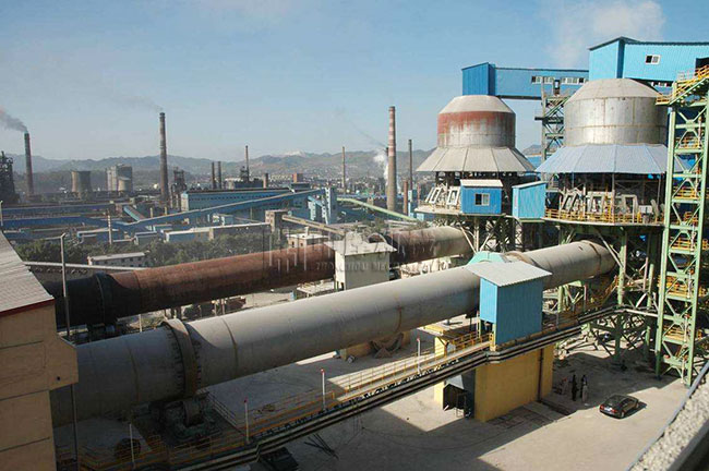 物料進入回轉窯首先進行預熱,在窯內和熱源充分加熱向前移動,在高溫區物料被加熱到設定溫度進行燒結或還原。溫度控制根據工藝要求從700℃-1350℃,燒結后出來的物料進入冷卻帶,待物料冷卻后通過輸送機或提升機將物料送入料倉。